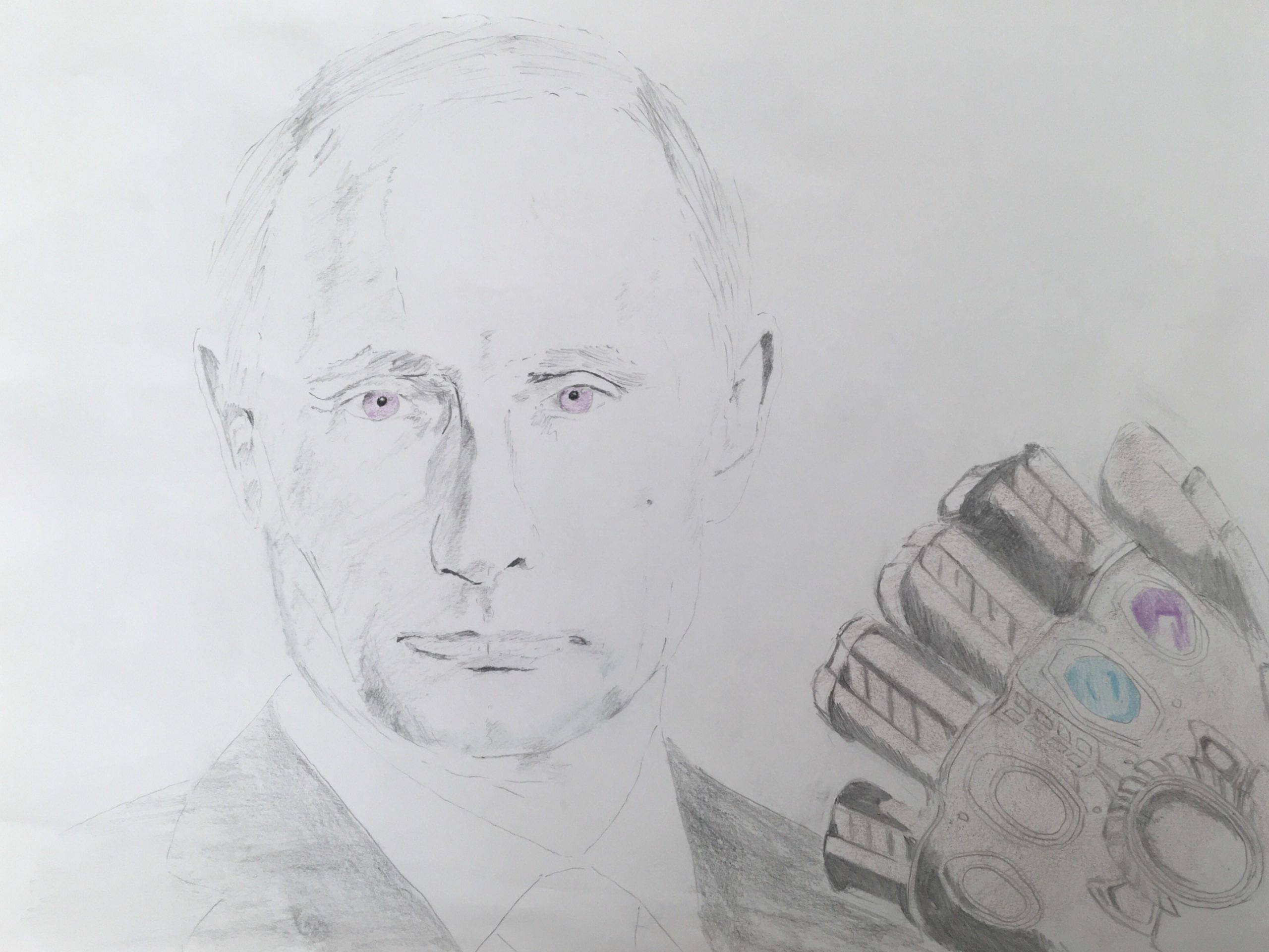 For the Putin article, I drew Putin with the Infinity Gauntlet…